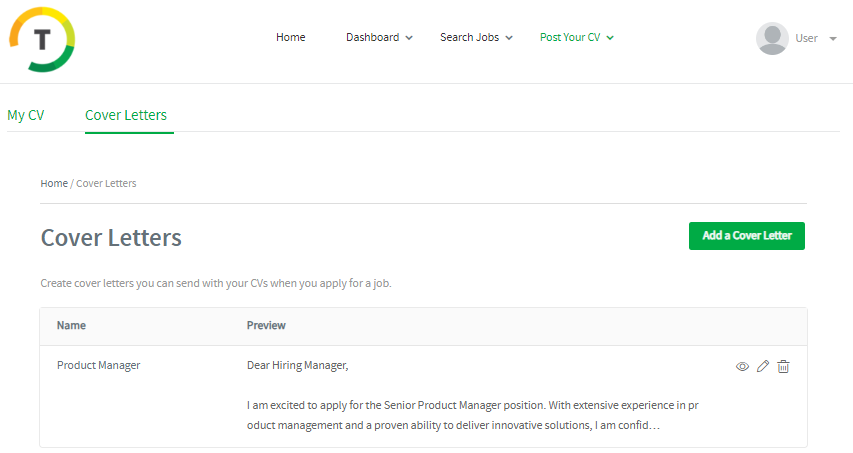 Create cover letters you can send with your CVs when you apply for a job.