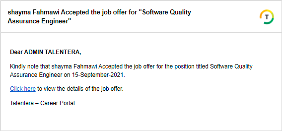 The below confirmation message will be displayed to the candidate upon acceptance.