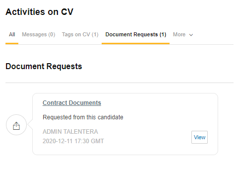 All sent document requests will be added to the Activities on a CV- Document Request tab.